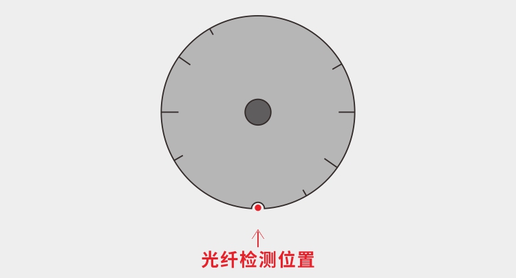 這里我們看一個案例,如下圖對一個圓型工件進行定位,利用光纖對缺口的位置進行檢測,光纖在缺口位置的光值和工件上其它邊緣位置的光值會有較大的區別從而進行區分判斷。圓型工件其它位置的裂縫也不會和缺口處的光值相同,能穩定判斷。