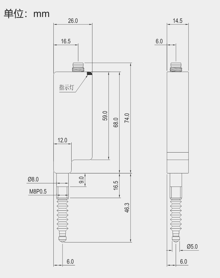 這款接觸位移采用24V DC供電,測量力只需要1.1~1.2N,輕觸可用,常用于測厚、測標簽疊料、測平整等。