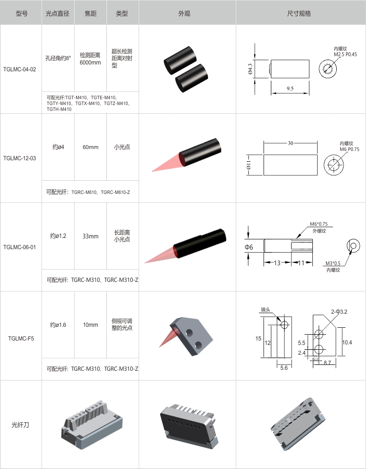 適用于M4對射光纖的聚光鏡,檢測距離可達6000mm。
