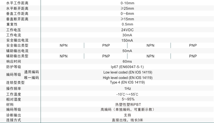 非接觸式安全門開關采用無線射頻識別應用技術,無論周圍發生何種變化,都要安全地進行開關,非接觸式安全開關工作穩定可靠。可以根據風險評估和機器設計的要求使用。