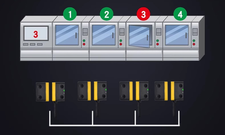 多個門通過級聯連接,可實現統一的安全輸出。確認是否有其中一扇門的開閉狀態不正常。