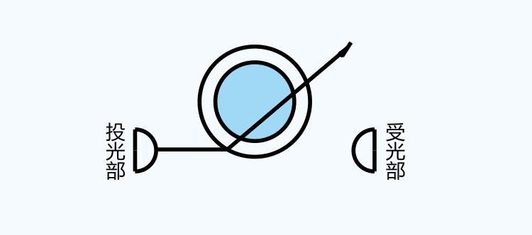 如導(dǎo)管內(nèi)有液體,投光部發(fā)出的光將穿透液體,不進(jìn)入受光元件。(遮光狀態(tài))