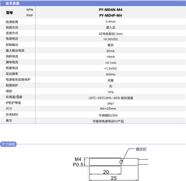 首頁 > 產品中心 >>傳 感 器 >> 接近開關 >> M4 圓柱型接近開關PY-MD4-M4