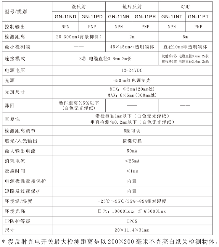 首頁 > 產品中心 >>傳 感 器 >> 光電開關 >> 背景抑制光電開關GN-11