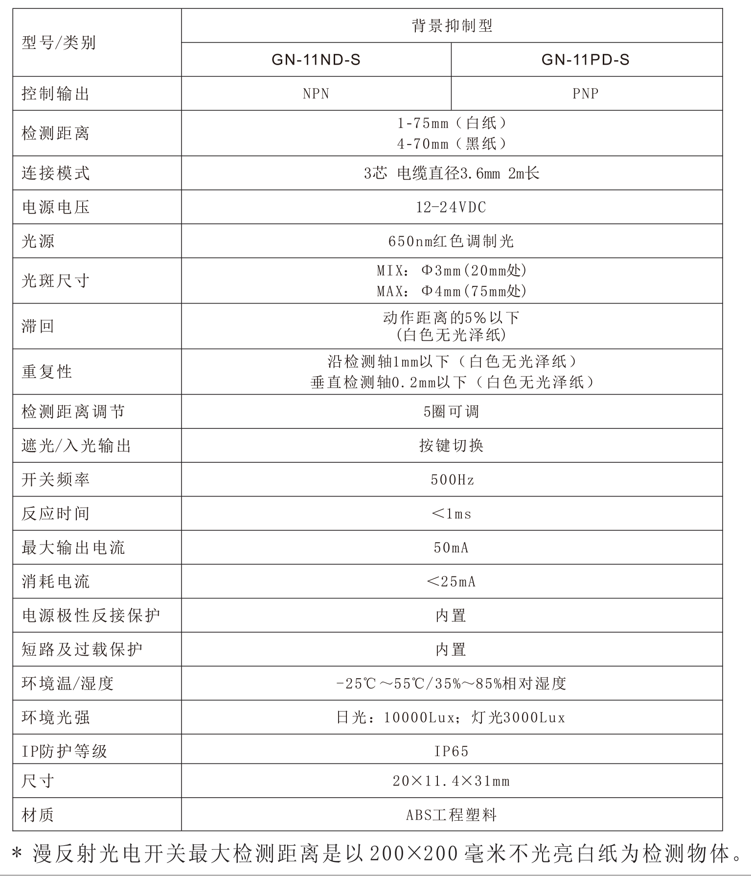 首頁 > 產品中心 >>傳 感 器 >> 光電開關 >> 背景抑制光電開關GN-11D-S