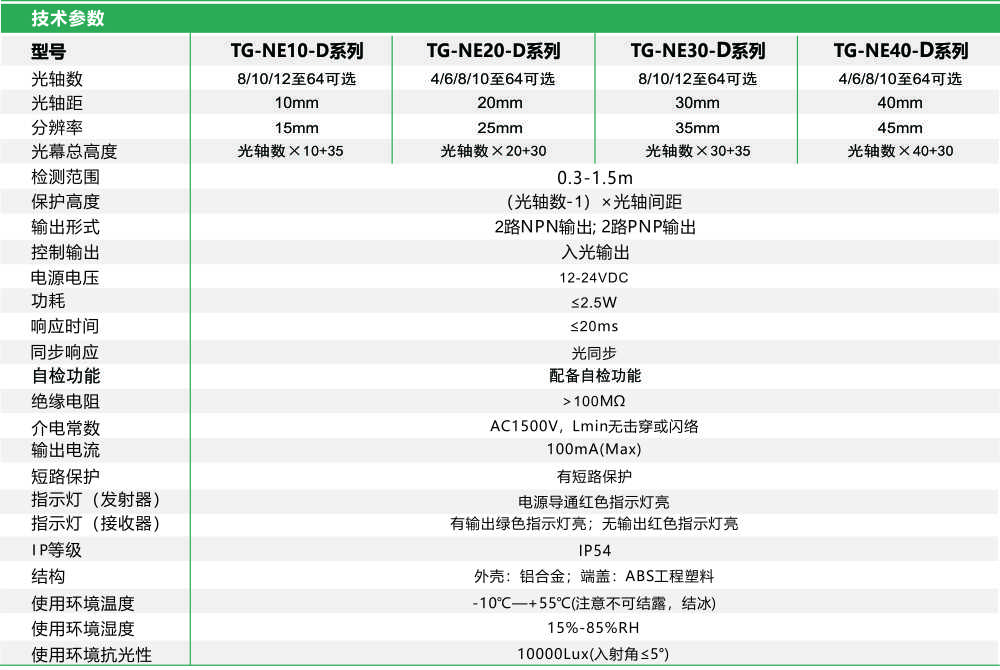 首頁 > 產品中心 >>傳 感 器 >> 安全光幕 >> 安全光幕正面對射TG-NE-D