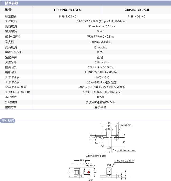 槽型光電開(kāi)關(guān)GU05-303-SOC