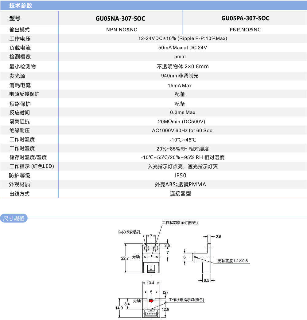 槽型光電開關GU05-307-SOC