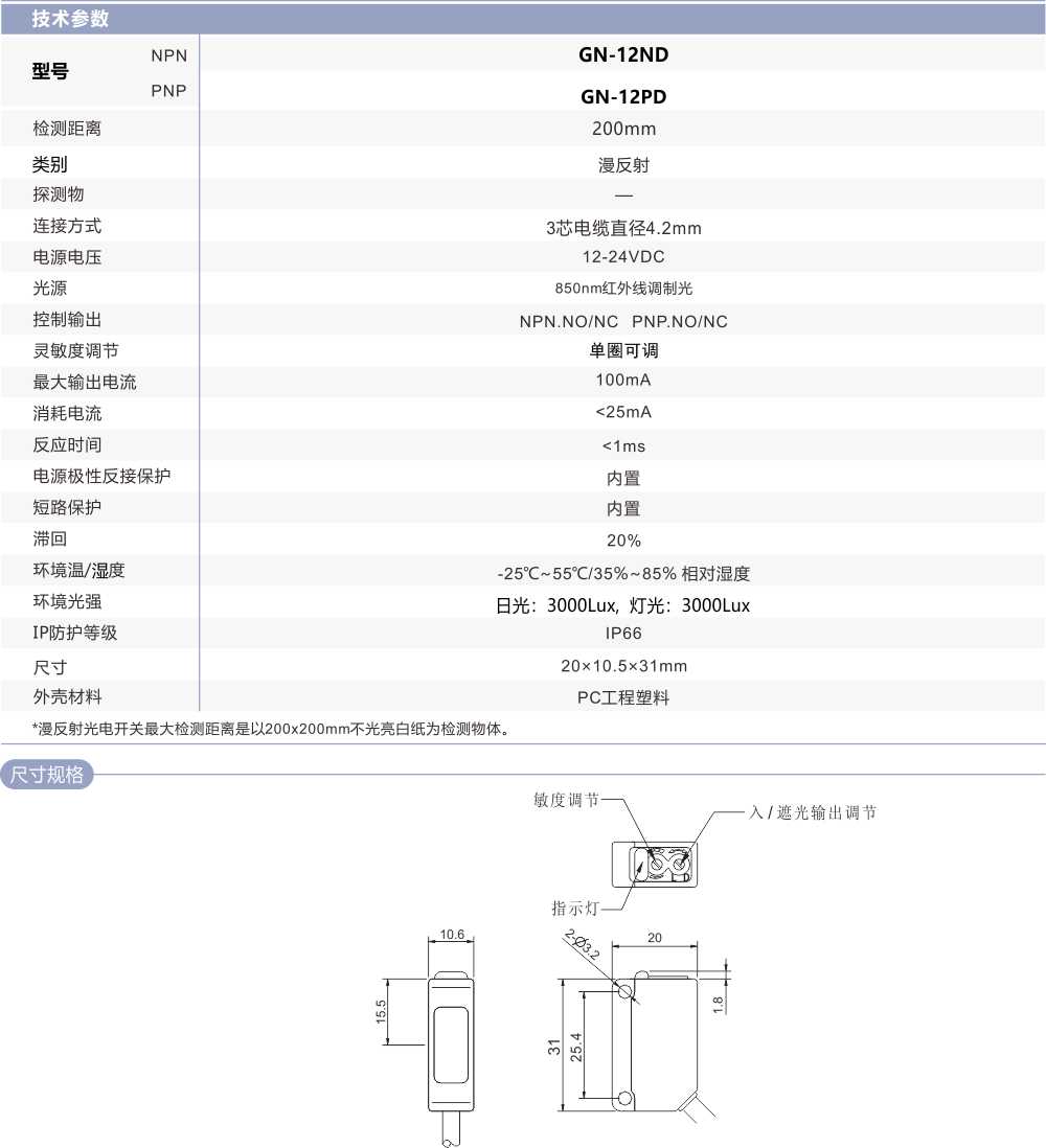 首頁 > 產品中心 >>傳 感 器 >> 光電開關 >> 光電開關GN-12D